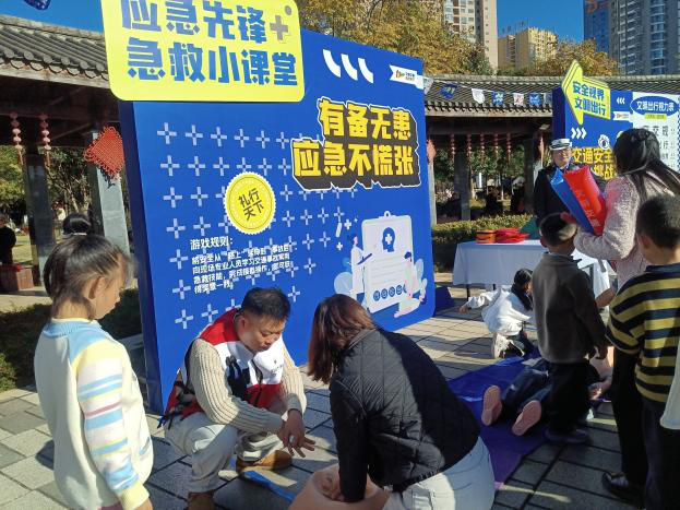 为响应第十四个“全国交通安全日”活动号召,市红十字会主动对接将应急救护宣传培训纳入文山州第十四个“全国交通安全日”主题活动的十大体验环节,于11月29日在文山市琵琶岛公园开展应急救护地摊公益培训活动。通过“零门槛、沉浸式”的互动教学,将交通事故中的急救技能送到市民身边,营造了“人人学急救、急救为人人”的公共安全氛围。