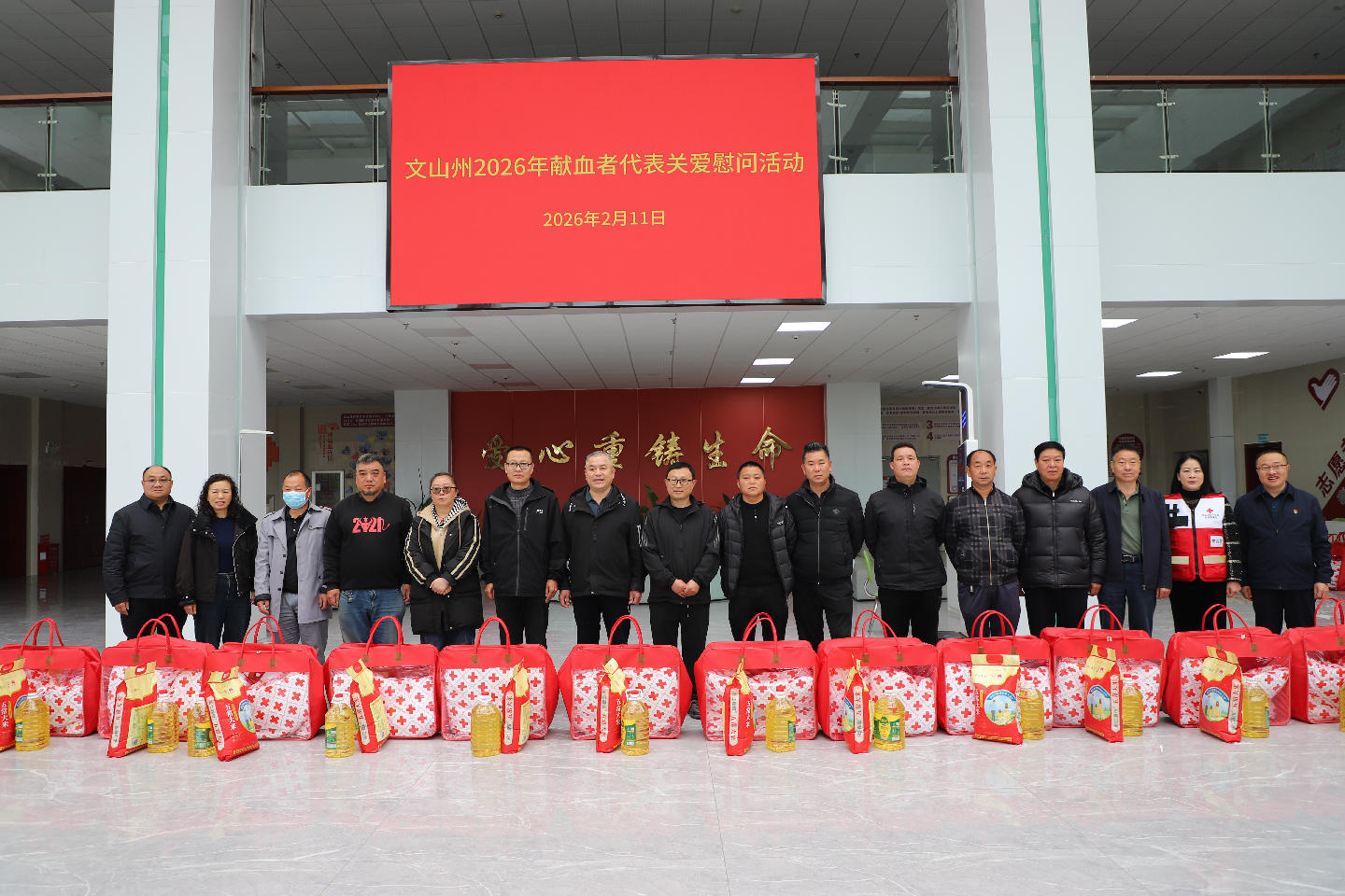 为深入弘扬“人道、博爱、奉献”的红十字精神,凝聚社会爱心力量,共同营造尊重、关爱无偿献血者的良好社会氛围,2月11日上午,文山州红十字会联合州中心血站共同组织开展“百次奉献 点亮生命——文山州2026年百次献血者代表慰问活动”。州红十字会及州中心血站相关负责同志、以及来自社会各界的百次献血者代表参加了本次活动。