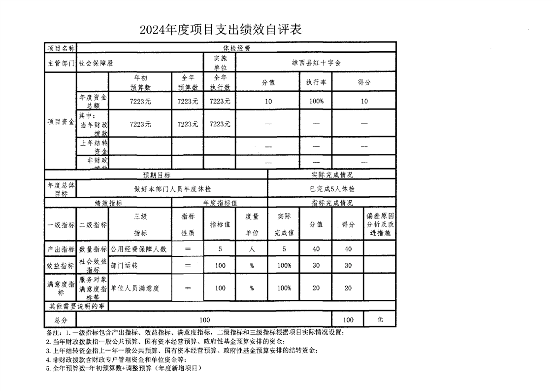 维西县红十字会2024年度部门项目支出预算绩效自评报告