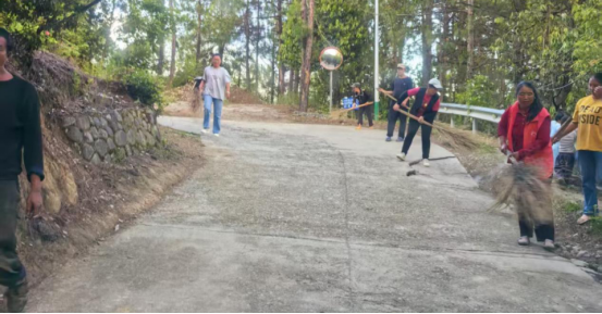 志愿者们还积极参与村组环境整治工作,清理垃圾、打扫公共卫生。他们手持扫帚、垃圾袋等工具,对村民小组的入户公路、