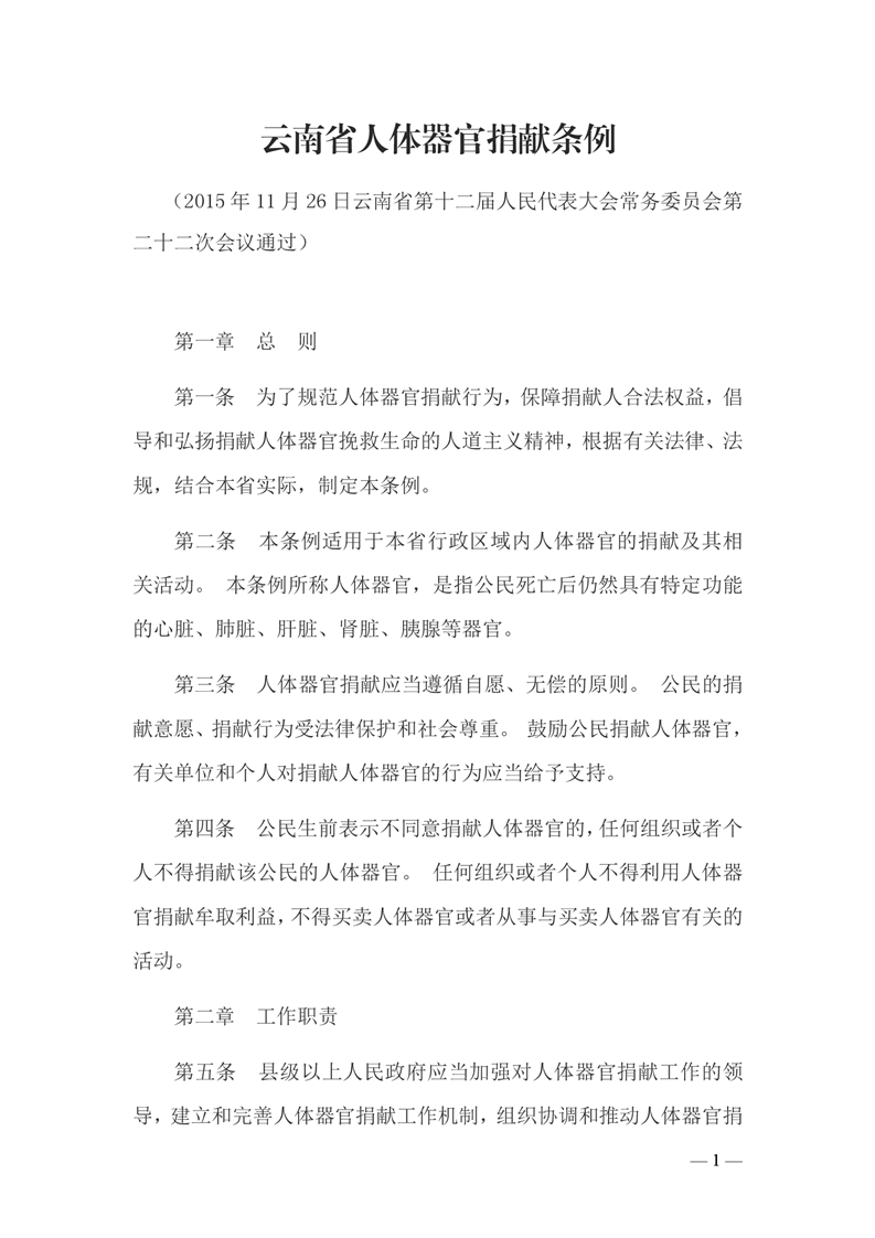 云南省人体器官捐献条例