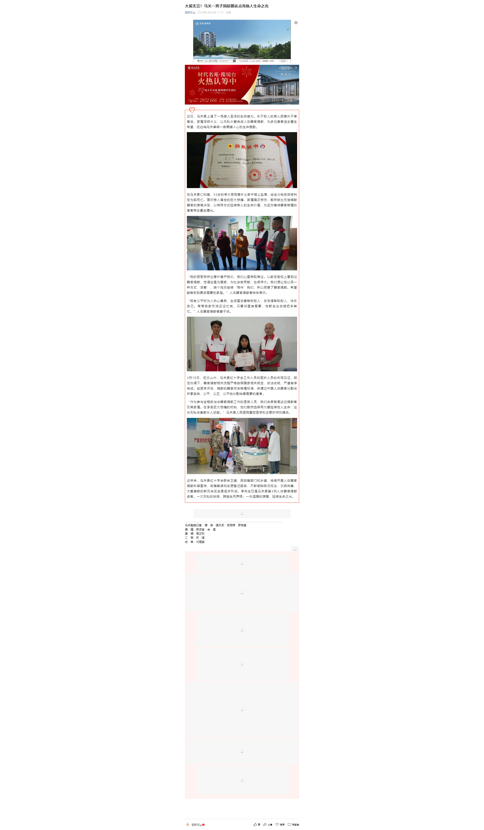 大爱无言!马关一男子捐献器官点亮他人生命之光