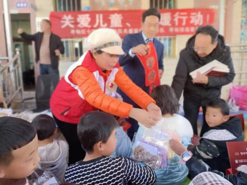 寻甸红十字志愿服务队到金所街道摆宰村幼儿园开展"博爱送万家,关爱儿童,春暖行动"活动