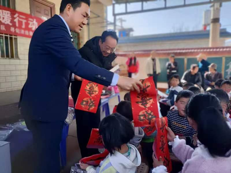 活动中志愿者们为孩子们赠送了亲手编织的爱心围脖;清逸书苑马清亮及其书友画家们现场书写春联、作画,并为孩子们准备了学习用品。并开展游戏互动和有奖竞猜活动,活动现场气氛温馨活泼,给孩子们带去了新年的祝福和无限快乐。