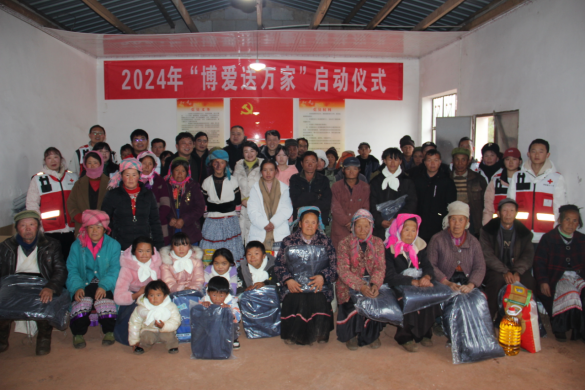 2024年1月下旬,寻甸县红十字会于在六哨乡拖期村委会阿罗山村举行2024年“博爱送万家”活动启动仪式。