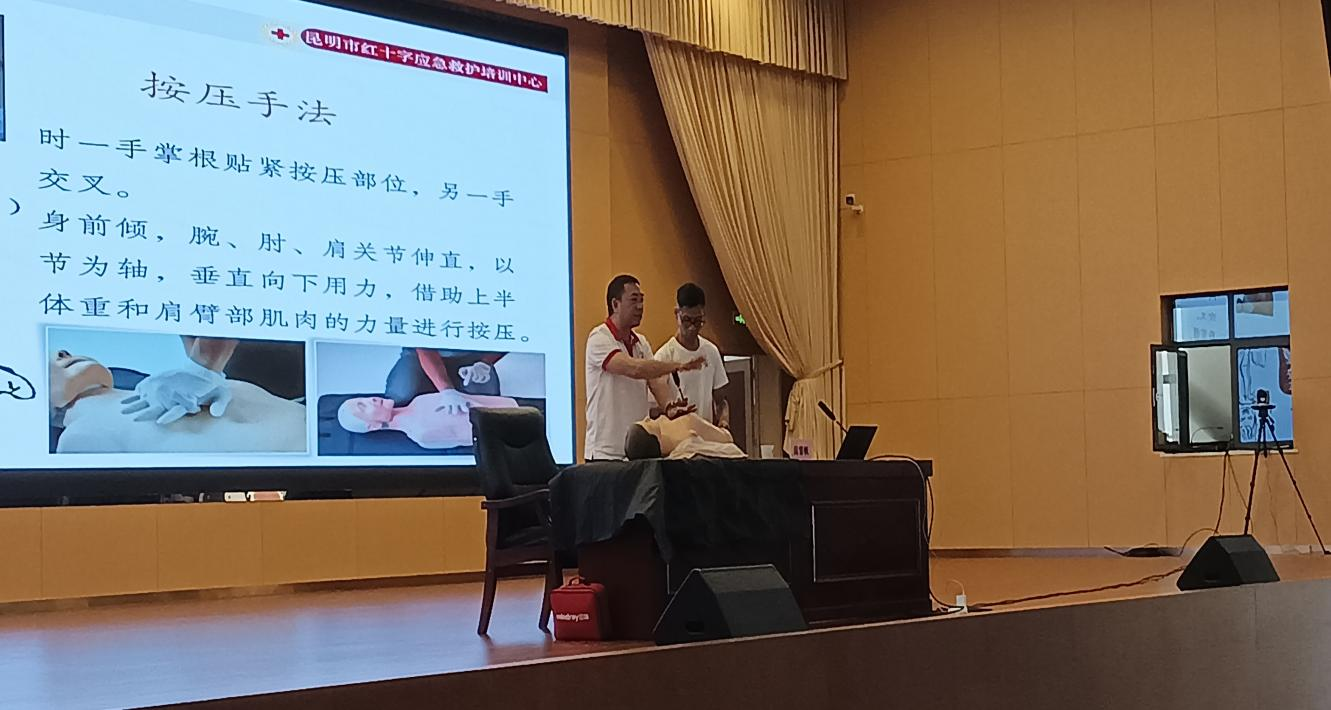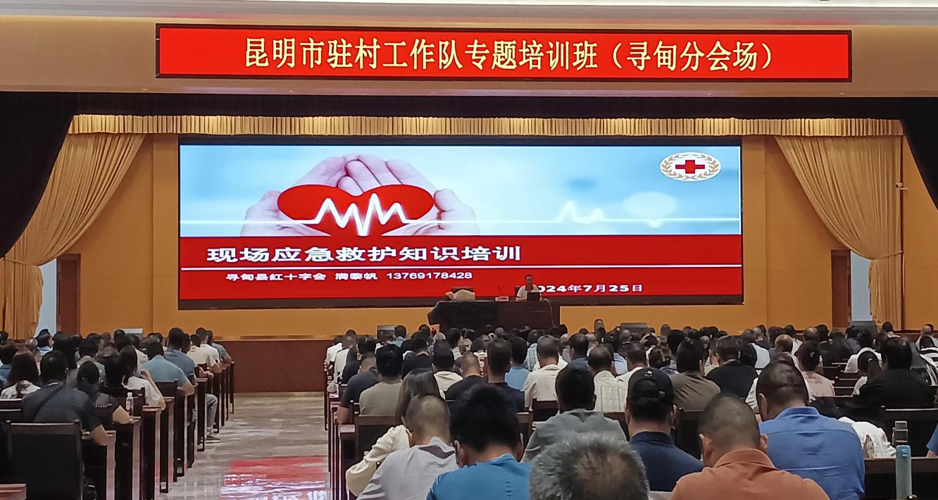 为提高驻村工作队员的生命安全意识,提升应对突发事件和意外伤害事故的应急救援和自救互救能力,受寻甸县委组织部邀请,7月25日上午,寻甸县红十字会给463名驻村第一书记和工作队员开展应急救护培训,主要内容有现场应急救护理论知识、常见急症救护、意外伤害救护、创伤救护技能、院外心肺复苏、AED使用等,并进行现场实操。