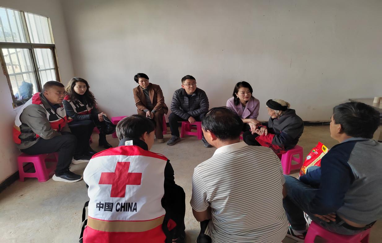 2025年3月3日下午,寻甸县人民政府副县长、县红十字会会长彭丽娜等领导一行深入河口镇海嘎村,实地走访慰问因近日火灾受困的农户家庭,亲切看望受灾群众,详细了解灾后生活状况,并送上党和政府的关怀与慰问物资。此次慰问活动不仅为受灾群众送去了温暖和希望,更彰显了县委县政府“以人民为中心”的执政理念和红十字会“人道、博爱、奉献”的精神底色。