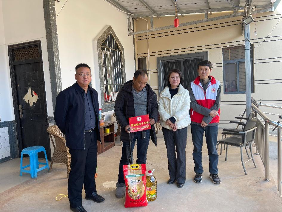 启动仪式现场,彭副县长强调,“博爱送万家”活动是红十字会践行“人道、博爱、奉献”精神的重要举措,也是党和政府民生工作的有益补充。多年来,县红十字会积极开展各类救助活动,为众多困难群众送去了温暖和希望,在保障和改善民生方面发挥了重要作用。此次活动,旨在帮助困难群众度过一个欢乐、祥和的春节。希望通过大家的共同努力,让每一位困难群众都能感受到社会大家庭的关爱,让他们的生活更加美好。随后,彭副县长与相关部门负责人一起为49户受助群众代表发放了大米、食用油、书包等生活物资。活动结束后,彭副县长一行还深入到2户重病困难群众家中进行走访慰问,并发放慰问金。