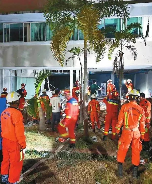 △ 当地时间30日凌晨5时,中国云南救援医疗队在内比都欧达拉蒂利医院废墟下救出一名幸存者。张莹琳 摄