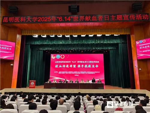 6月15日上午,以“献血传递希望,携手挽救生命”为主题的云南省昆明市2025年“6·14”世界献血者日主题宣传活动在昆明医科大学礼堂举行。