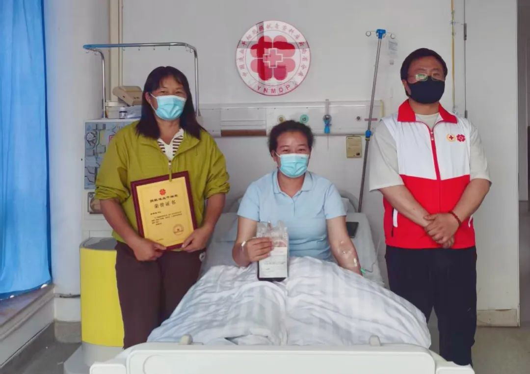 5月23日上午8时42分,在中国造血干细胞捐献者资料库云南省分库工作人员、云南“三献”志愿服务总队多名志愿者和医护人员的照护下,李婷莲成功捐献了造血干细胞,成为了云南省第463例、大理州第51例、巍山县第5例造血干细胞成功捐献志愿者。此前,巍山县农业农村局干部孙昀、某保险公司员工朱志鑫、南诏镇山头厂村村民何云荣、青华乡中窑村村民叶剑伟从2021年7月至今年2月先后成功捐献了造血干细胞。