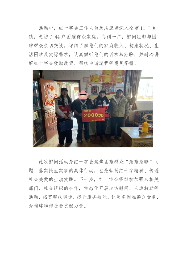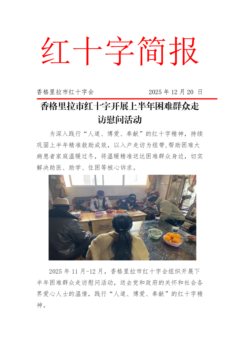 香格里拉市红十字开展下半年困难群众走访慰问活动