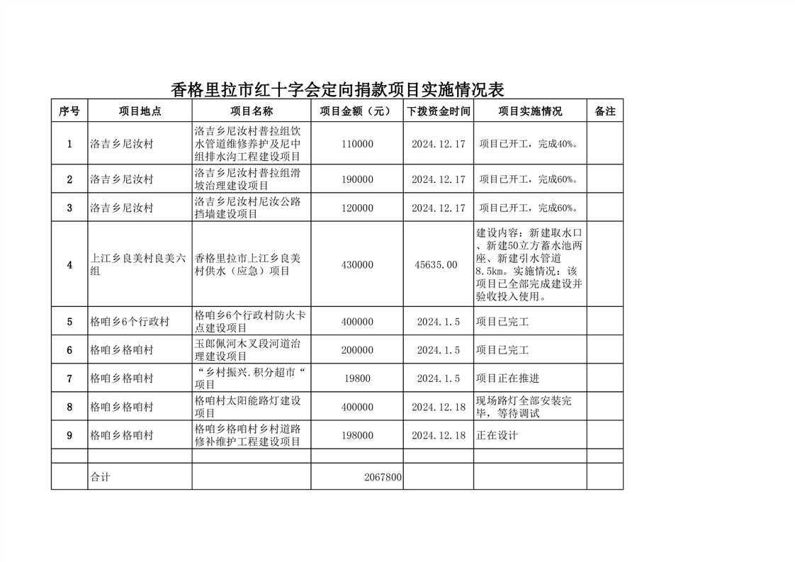 香格里拉市红十字会项目实施情况表(截止2025年9月)