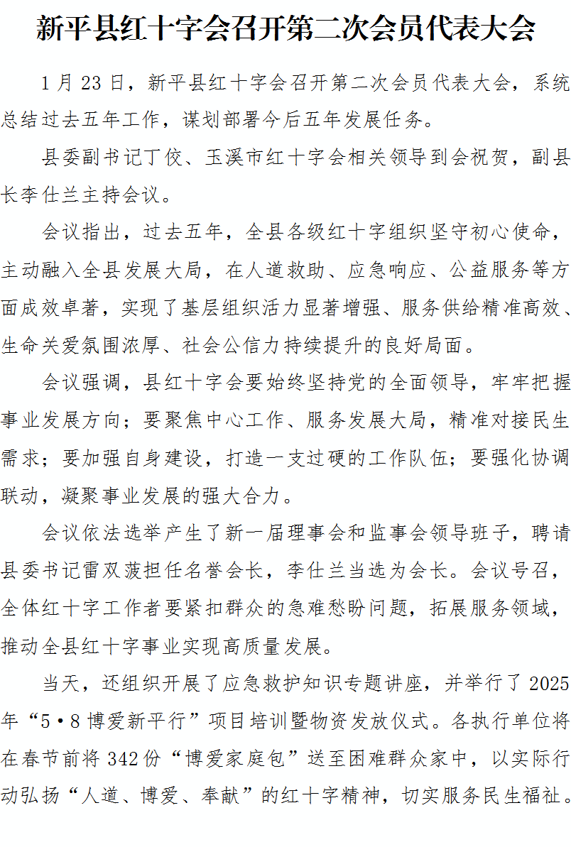 新平县红十字会召开第二次会员代表大会