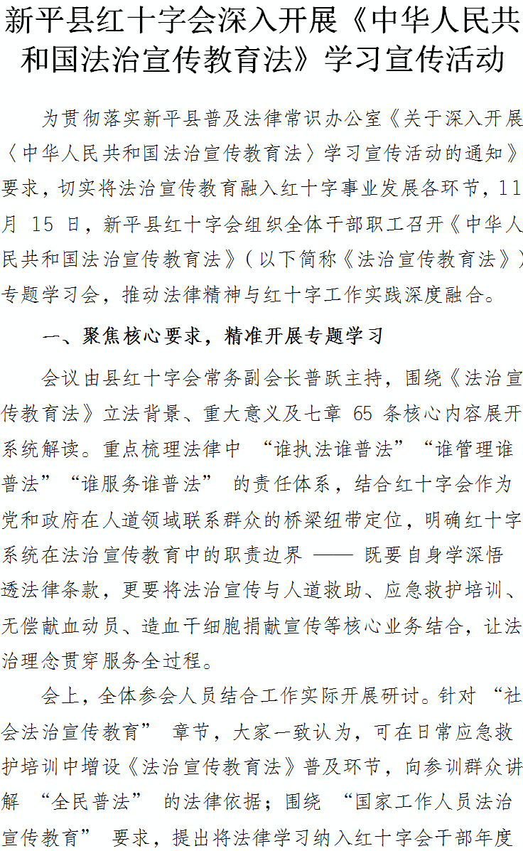 新平县红十字会深入开展《中华人民共和国法治宣传教育法》学习宣传活动