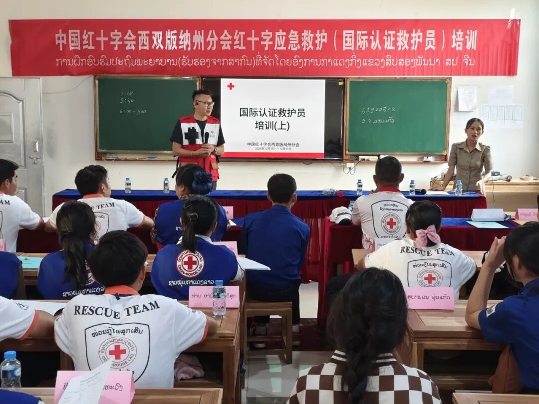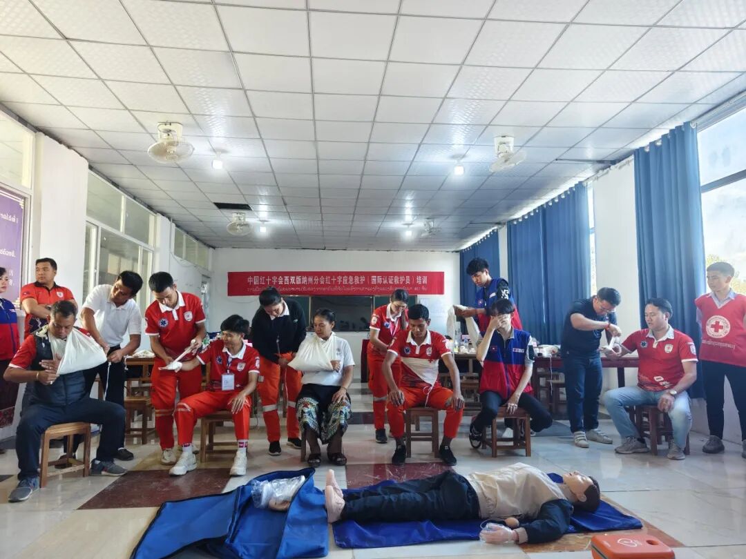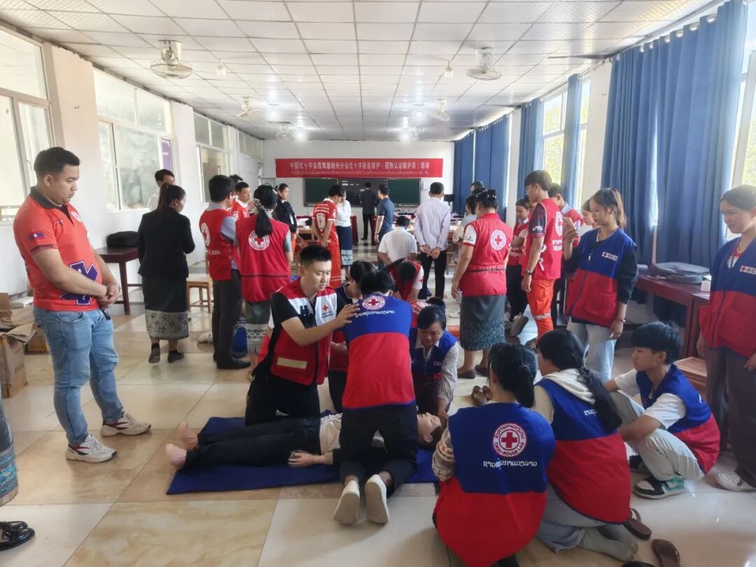 9日至11日,代表团在老挝乌多姆赛省中老友谊学校举办为期3天的红十字应急救护(国际认证救护员)培训,来自老挝琅勃拉邦省、乌多姆赛省、波乔省红十字会和中老友谊学校的36名学员参加培训学习,通过理论学习与实操练习,参训全体学员通过培训考核。老挝乌多姆赛省红十字会学员素帕蓬·乌娇说到:“通过3天的应急救护知识学习培训,我学到了创伤救护、心肺复苏、意外伤害等急救知识,回去以后,我要向身边的人多宣传学到的技能,把红十字精神、应急救护知识传播得更广,帮助群众提升自救互救与防灾减灾能力,减少事故、灾害造成的身体伤害或财物损失,保护人的生命和健康”。