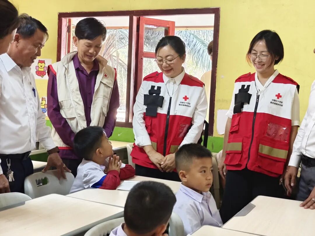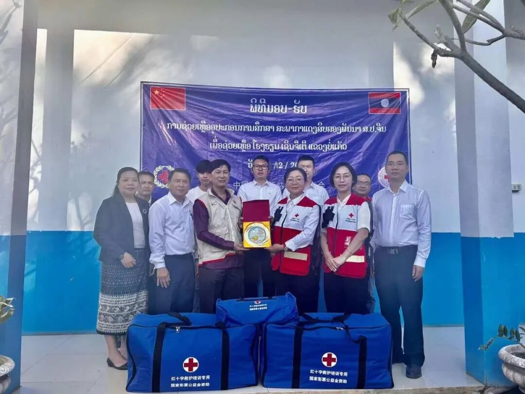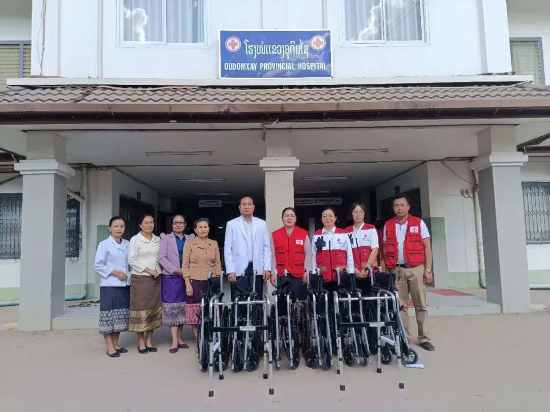 期间,代表团还访问隆果幼儿园、寮北学校及中老友谊学校,对“红十字·微心愿”、“心联通 云南行”等援助项目进行回访,了解项目执行情况、课桌椅等援助物资使用情况;参观了乌多姆赛省医院、血液中心及应急救灾大楼;向乌多姆赛省医院捐赠轮椅、残疾人助行器等援助物资,向老挝乌多姆赛省、琅勃拉邦省、波乔省红十字会捐赠成人心肺复苏模拟人10具和婴儿气道异物梗阻模型6具;与乌多姆赛省红十字会会谈,就举办应急救护培训、实施以医疗救助为主的“救心连心”活动、关怀救助肢障人士、推动援助项目落实等2025年合作事宜进行商讨,为下一步深入合作交流打牢基础。老挝乌多姆赛省红十字会主席西提翁·宏萨宽全程参与会谈和走访活动。