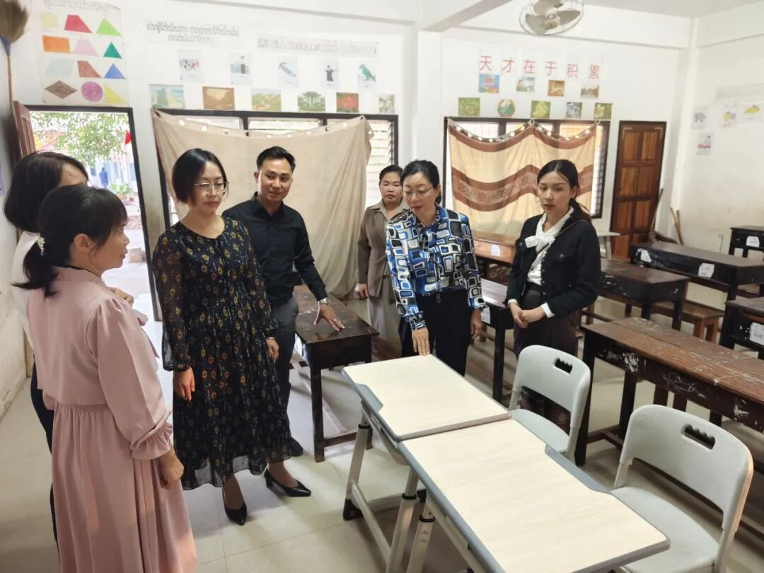 11日,代表团到达老挝南塔省,走访寮龚华文学校,回访捐赠课桌椅使用情况,同校方沟通援助项目申报方案及实施计划。