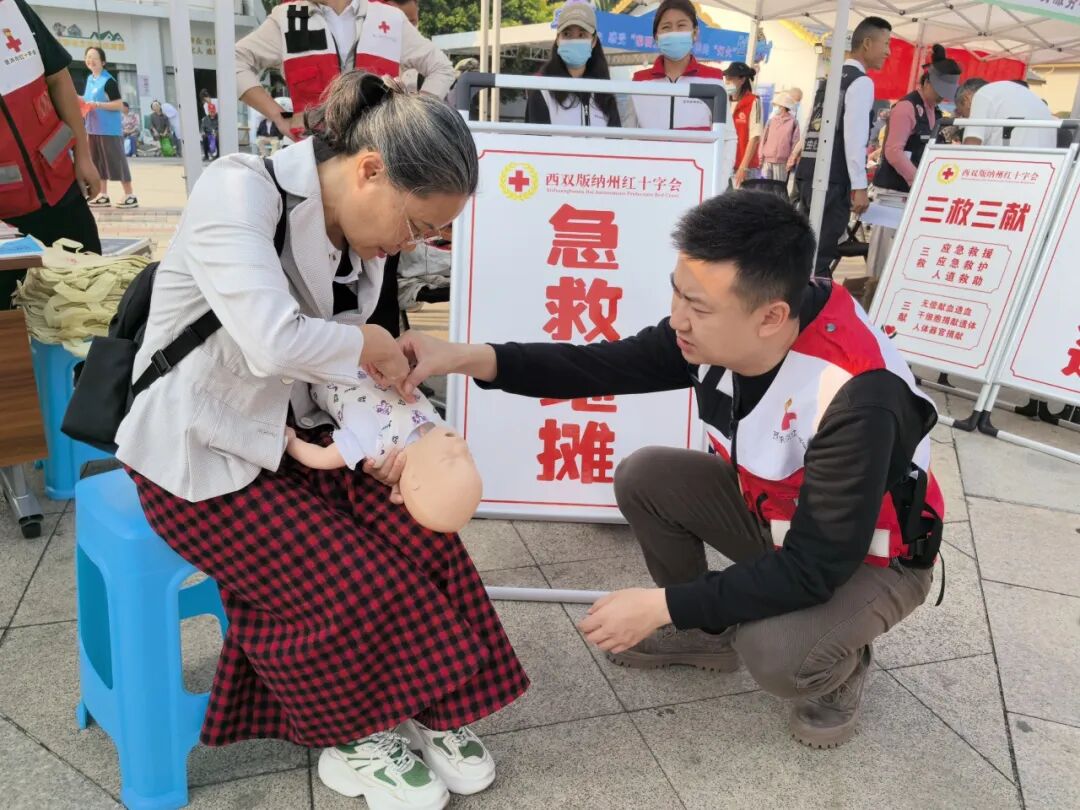 当日,州红十字会与州志愿服务联合会、景洪市文明办以及萤火虫志愿服务队等多个部门和公益组织,共同在“志愿服务文明集市”中设立了多个独具特色的志愿服务摊位。这些摊位为市民们提供了包括健康义诊、急救普及和法律知识、垃圾分类、文明礼仪宣传等在内的多项温馨服务。活动累计培训市民100余人次,发放急救手册200余份,让广大群众“学急救”、“会急救”,“敢急救”,有效提升了公众应对突发意外的能力,受到了广大市民的热烈欢迎和积极参与。