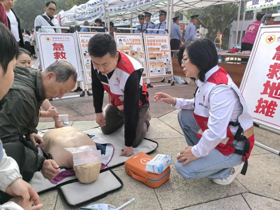 “你们好,我们讲急救知识,愿意听一下吗?”在志愿服务“文明集市”中,红十字红心志愿服务队志愿者现场摆起“急救地摊”,“手把手”教市民群众学习心肺复苏、气道异物梗阻处理、急救创伤包扎等急救基本技能。“希望你们能够利用今天学的知识争取‘黄金4分钟’,给生命多一次机会!”在讲解急救知识的过程中,志愿者们一遍遍地重复着这句话。