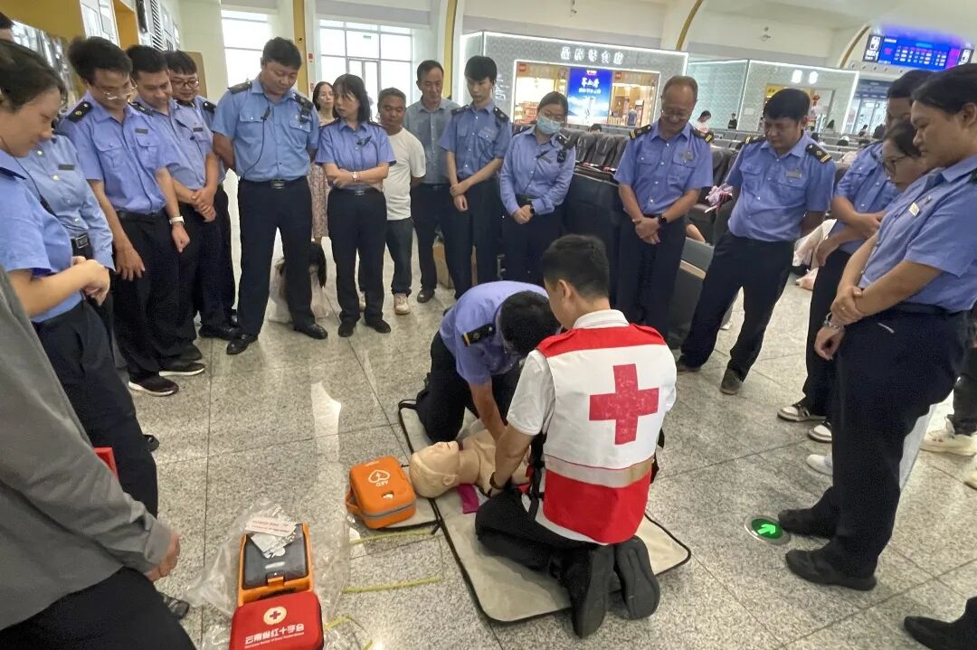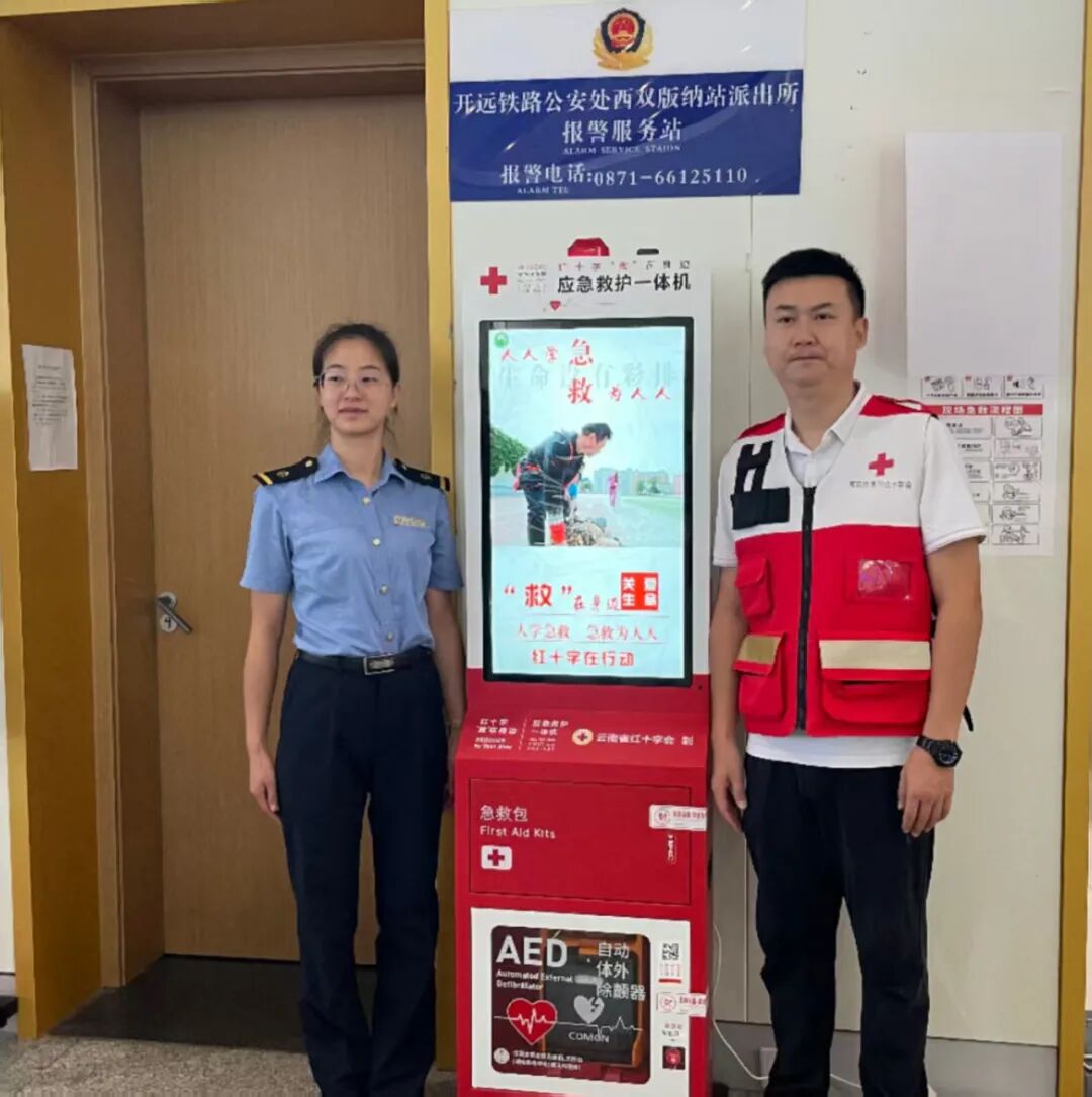为进一步提升公共场所应急救护能力,保障中老铁路旅客生命安全,近日,西双版纳州红十字会在西双版纳火车站投放应急救护一体机并开展红十字救护员培训。