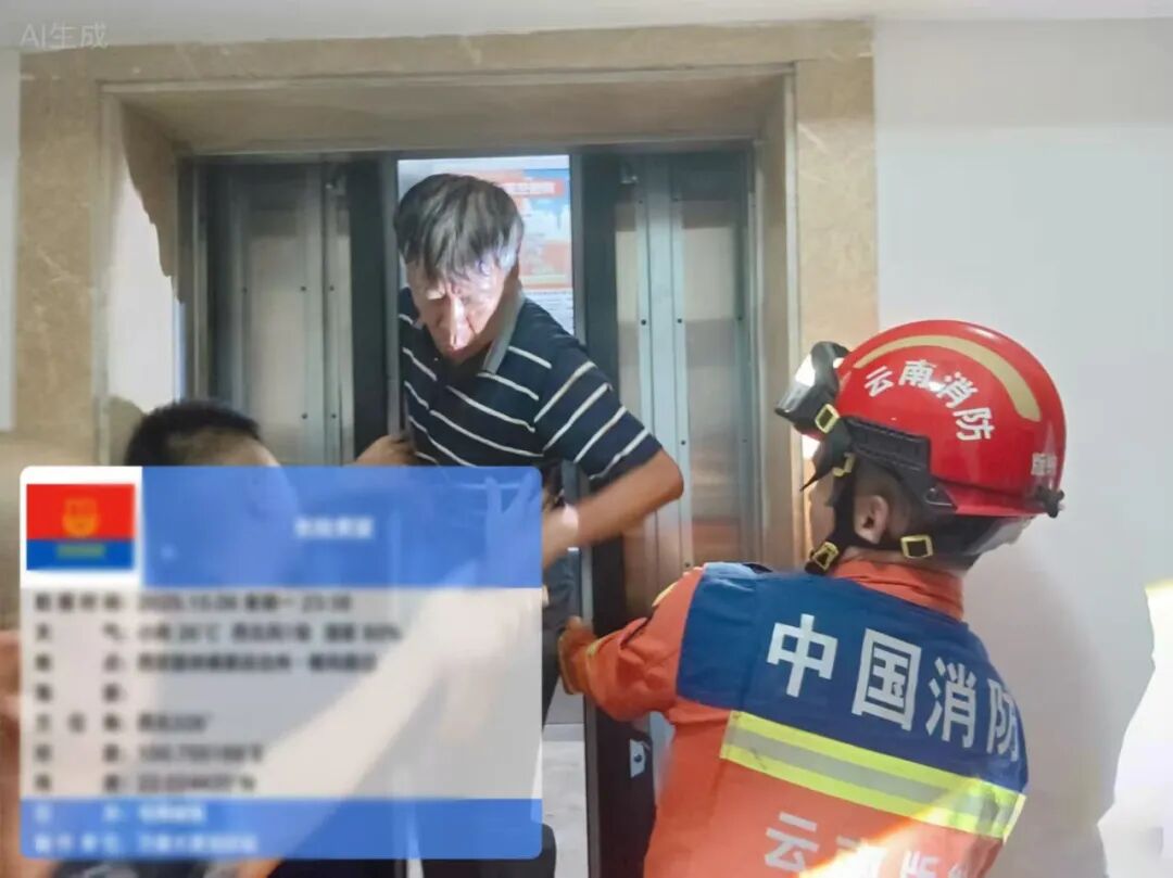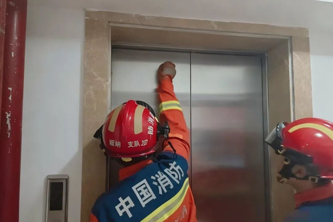 消防救援人员到场后,通过喊话安抚被困人员情绪,同时使用电梯专用钥匙将电梯门打开,被困人员安全从电梯脱困。
