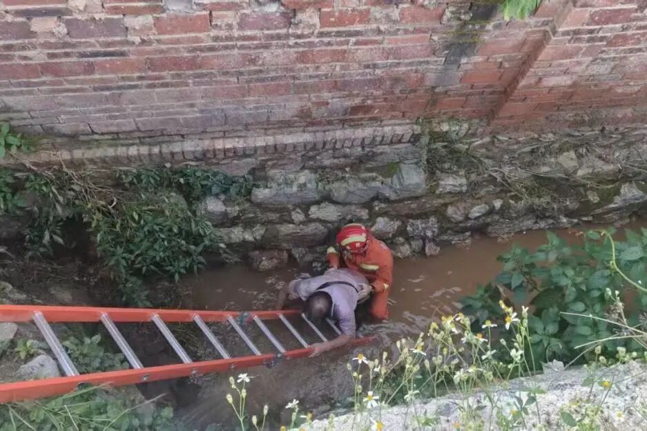 10月11日,西双版纳州消防救援支队指挥中心接到报警称:勐养永连五金店附近一名老人不慎跌入深约3米的水沟,无法自行脱困。