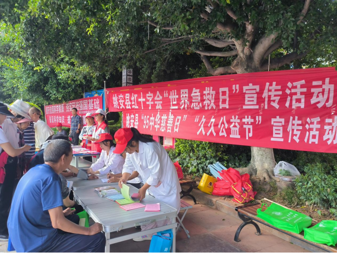9月4日,姚安县红十字会携手县委宣传部、团县委、县科技局、县残联、县妇联、县科协、县文联等十余家县级单位和部门,联合县人民医院、县中医医院,在县梅葛文化广场开展以“汇聚向善力量,共创美好生活”为主题的“中华慈善日”暨“久久公益节”志愿服务活动。