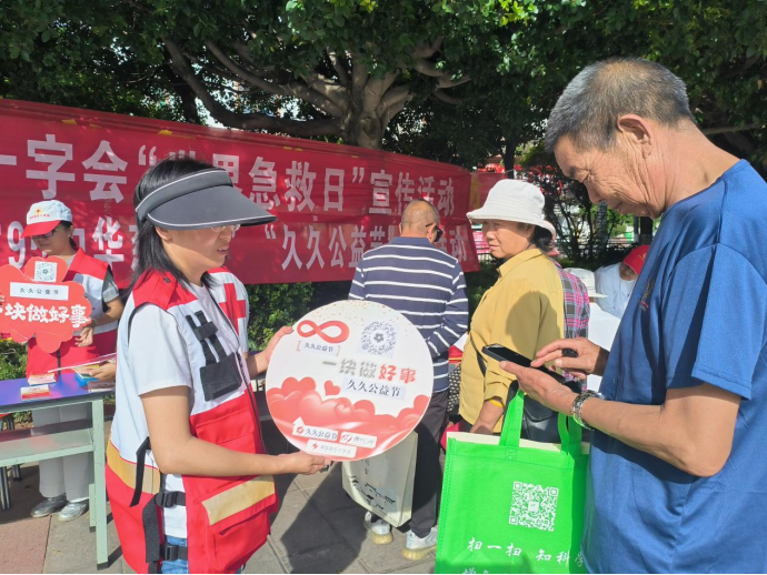 活动现场,县红十字会工作人员向过往群众发放宣传手册、开展政策讲解、健康义诊,开展心肺复苏等应急救护技能实操教学,开展“久久公益节”互联网筹款动员活动,20余名群众现场扫码参与了公益筹款。