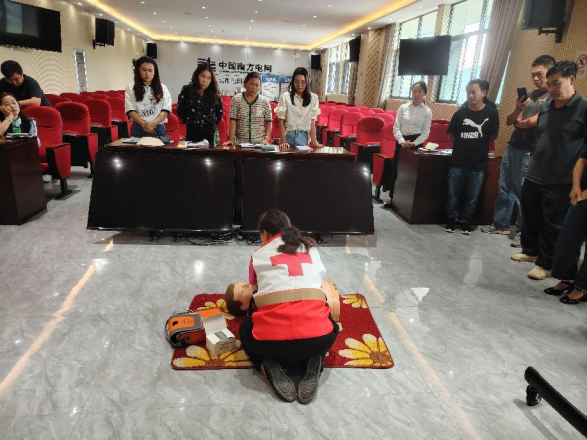 为将应急救护技能延伸至更广泛的领域,9月18日,县红十字会应南方电网永德供电局的邀请,组织专业师资队伍走进企业,为供电局的一线员工和管理人员带来了一场干货满满的应急救护专场培训。通过“理论+演练+实操”方式,向参训人员系统讲解了心肺复苏(CPR)的原理、AED的操作要点及常见意外伤害的现场救护知识。在理论铺垫后,参训学员在讲师指导下,利用人体模型和训练AED进行了分组演练,严格按照步骤练习胸外按压、人工呼吸和电极片贴放等操作。培训最后设置了实操考核环节,确保每位学员都能正确掌握核心急救技能。通过这种沉浸式的培训,极大提升了企业员工应对突发状况的处置能力和信心,为企业安全生产和员工生命安全再添一道“防护网”。