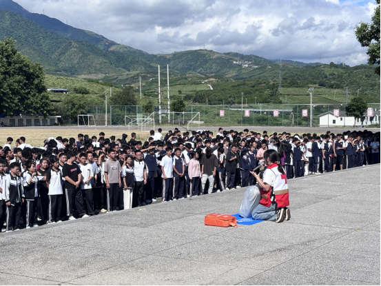 为提升学生应急自救互救能力,8月28日,元江县红十字会走进元江一中开展应急救护培训,高一军训新生为主要参训对象,全校学生同步参与,现场学习氛围浓厚。