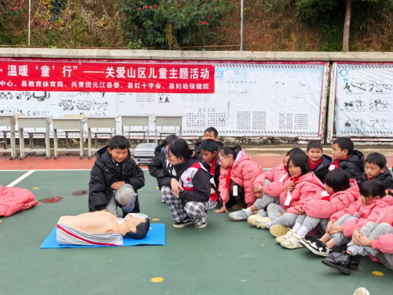 在山区学校发放仪式上,孩子们接过崭新的棉服,脸上洋溢着灿烂的笑容。县红十字会工作人员向孩子们致以问候,鼓励他们努力学习、传递爱心。活动期间,县红十字会还在龙潭中心学校为高年级学生开展应急救护培训,通过理论讲解、实操演练等方式,教授止血包扎、心肺复苏等实用技能,提升学生自我保护能力。