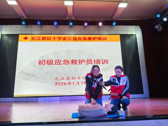 1月19日,元江县2026年寒假大学生“返家乡”社会实践活动启动会同步开展初级救护员培训,县红十字会专业讲师为30余名返乡大学生送上“安全技能大礼包”,以专业赋能助力青年学子在社会实践中守护生命安全。