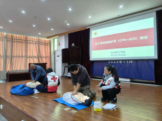 近日,县红十字会走进元江县供电局开展心肺复苏(CPR)+自动体外除颤器(AED)专项取证培训,来自各部门的一线作业人员、安全员及班组长共120余人分两期参训,经理论考核与实操评估,全员顺利取得“红十字救护员”证书,为电网安全运行增添“生命防护盾”。