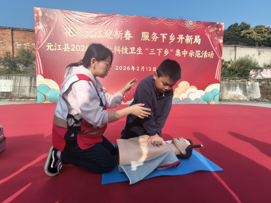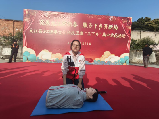 为深入推进2026年文化科技卫生“三下乡”集中示范活动,把实用急救技能送到群众身边,近日,元江县红十字会在活动现场开展应急救护知识普及培训,以专业服务守护基层群众生命健康,弘扬“人道、博爱、奉献”的红十字精神。