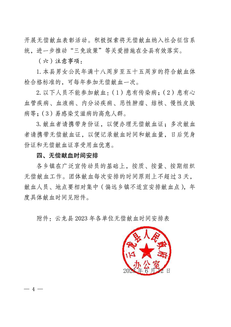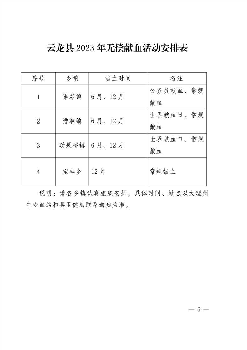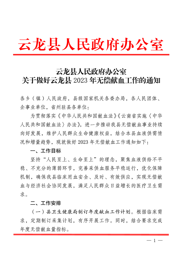 转发云龙县人民政府办公室《关于做好云龙县2023年无偿献血工作的通知》