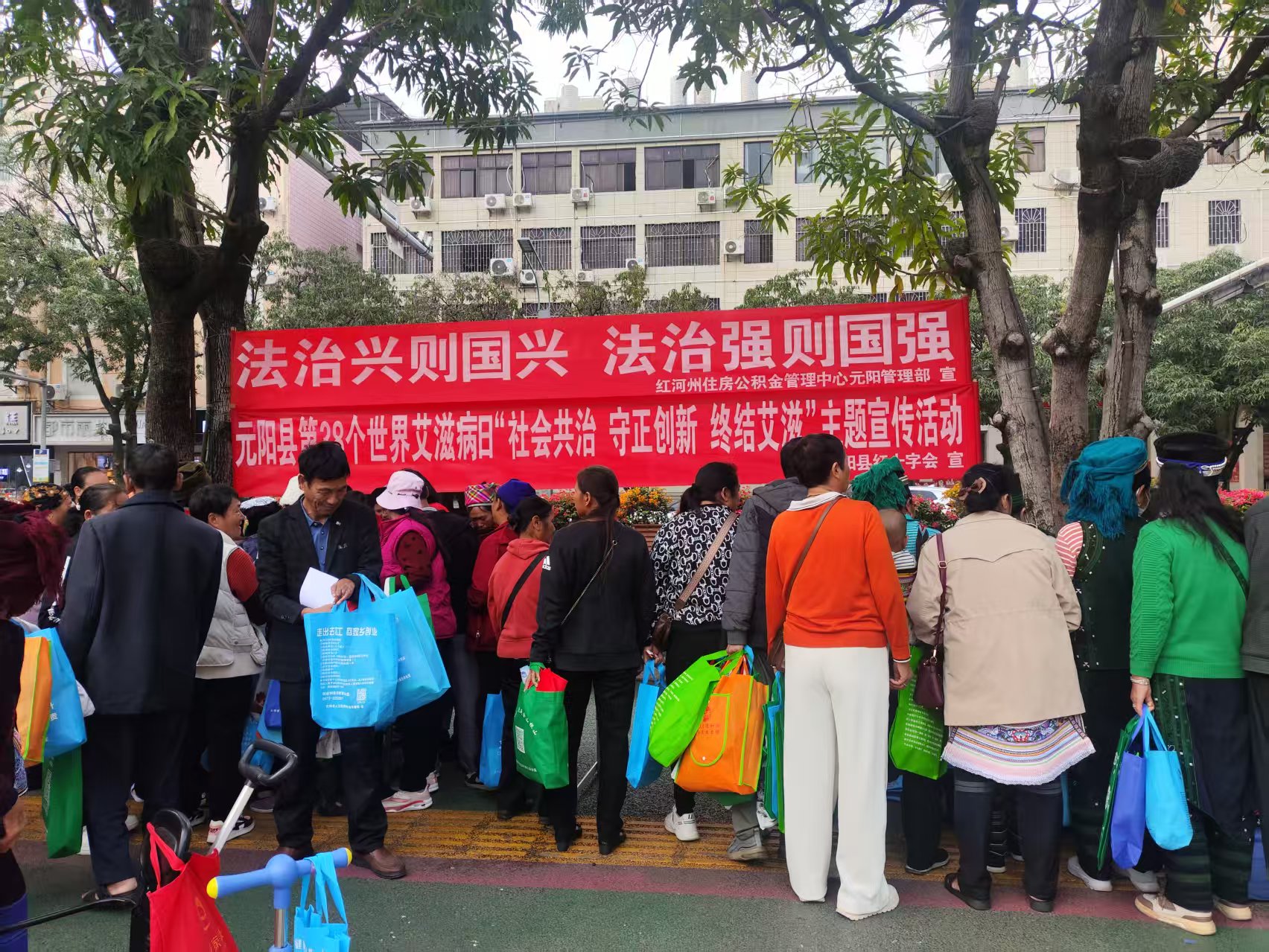 12月1日是第38个“世界艾滋病日”,宣传主题为“社会共治 守正创新 终结艾滋”,恰逢第40个“12·5国际志愿者日”接踵而至。元阳县红十字会立足“人道、博爱、奉献”精神,联合县委宣传部、县群团联盟、县卫健局等多部门及多支志愿服务队,于12月4日在县人民广场开展集中活动,以防艾宣传为核心主线,同步配套志愿服务,为群众送上健康关怀与公益温情。