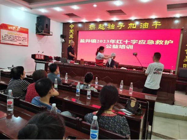 4月20日,盐津县红十字会到盐井镇人民政府开展应急救护公益培训,镇、村(社区)干部群众共1000余人参加培训,10名红十字应急救护师资到场观摩学习交流。镇政府会议室设主培训会场,17个村(社区)设分培训会场,通过腾讯视频连线收看学习。培训由盐井镇党委委员、纪委书记李顺伦主持,县红十字会常务副会长刘丽娜作培训动员讲话,昭通市红十字会培训中心优秀讲师曹洁作应急救护专题培训。