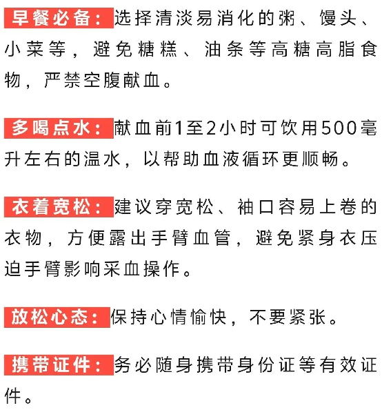 一次安全、顺利的献血体验,离不开献血前的精心准备。为了让你的“热血行动”更顺畅、身体感觉更舒适,我们为你整理了这份贴心指南,请花两分钟查收哦~