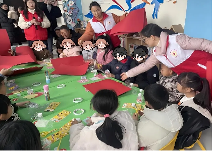 在社区儿童之家手工坊内,孩子们专注地剪裁、粘贴,彩纸、塑料瓶等材料在孩子们的巧手下变身“环保水瓶笔筒”,志愿者在一旁耐心协助,孩子们相互交流,满是温馨。
