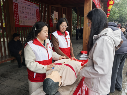 活动现场,志愿者们热情地向过往群众发放宣传资料,内容涵盖应急救护、防灾减灾避险、无偿献血等。面对驻足咨询的群众们,志愿者一一耐心讲解,特别是遇到身边人心搏骤停的紧急情况突发时,应该第一时间正确拨打120急救电话,并针对如何黄金四分钟内实施有效的徒手心肺复苏进行了细致入微的演示。不少群众被生动的讲解和实操所吸引,纷纷停下脚步,在志愿者的一对一指导下,亲自上手体验心肺复苏的操作流程,现场学习氛围浓厚。