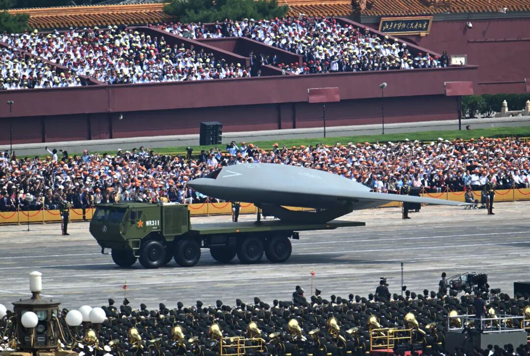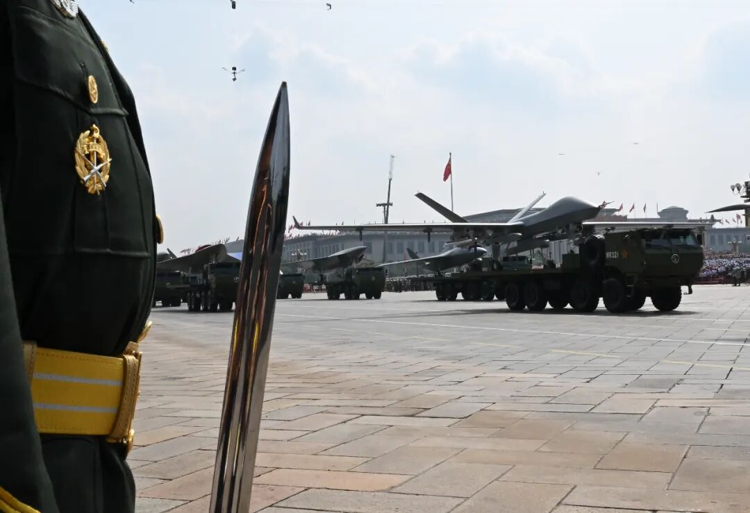 这是空中无人作战方队接受检阅。新华社记者 肖艺九 摄