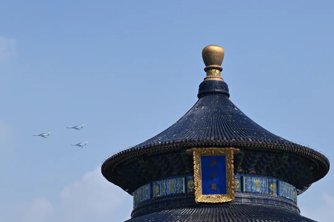 这是市民在卢沟桥观看运输机梯队。新华社记者 宋彦桦 摄