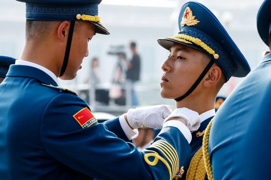 这是中国人民解放军仪仗方队接受检阅。新华社记者 刘续 摄