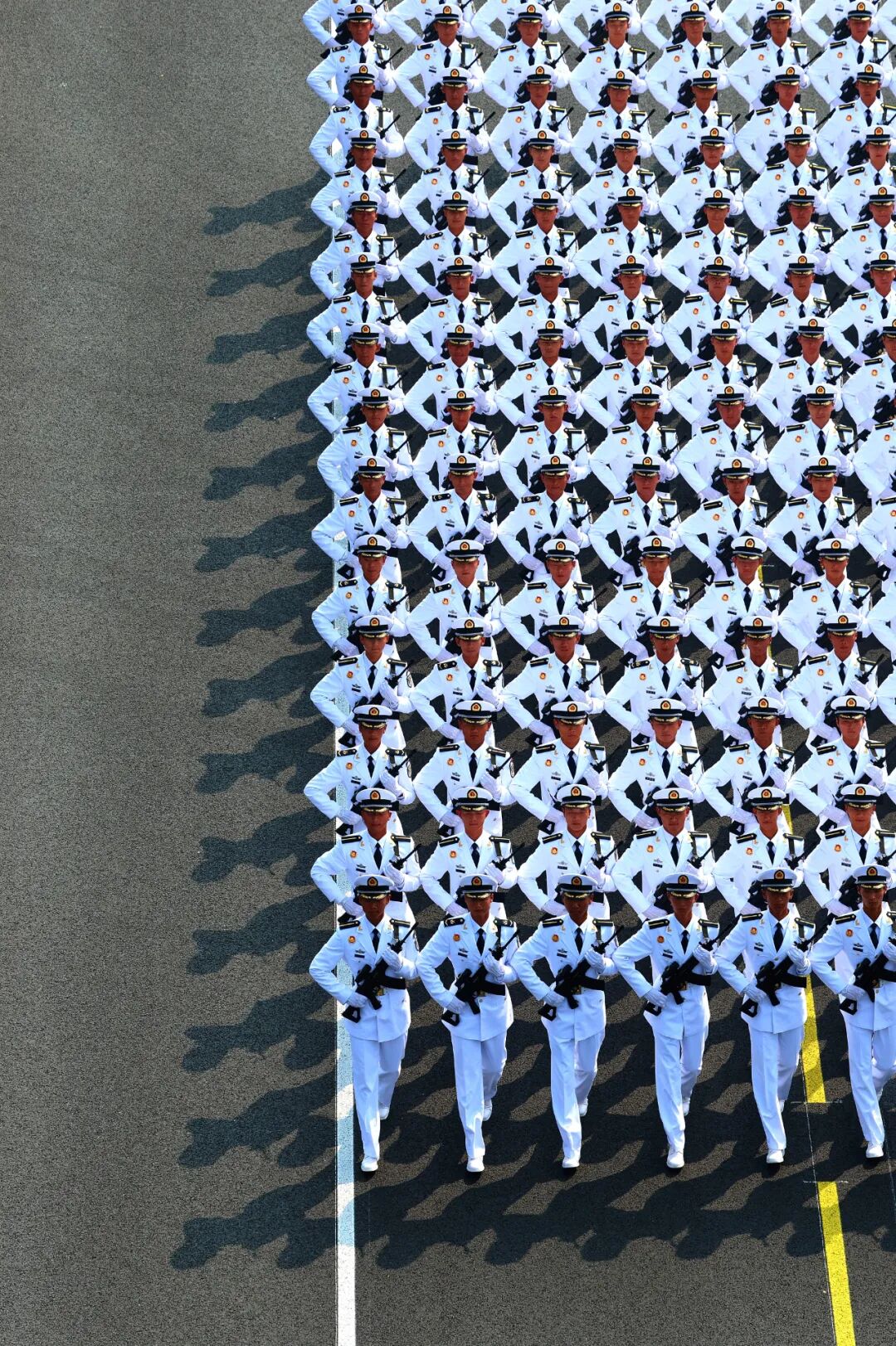 这是海军方队接受检阅。新华社记者 刘续 摄