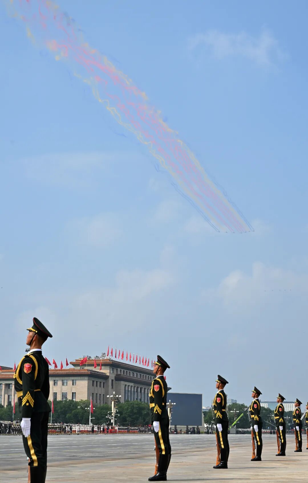 这是教练机梯队飞过天安门广场上空。新华社记者 殷博古 摄