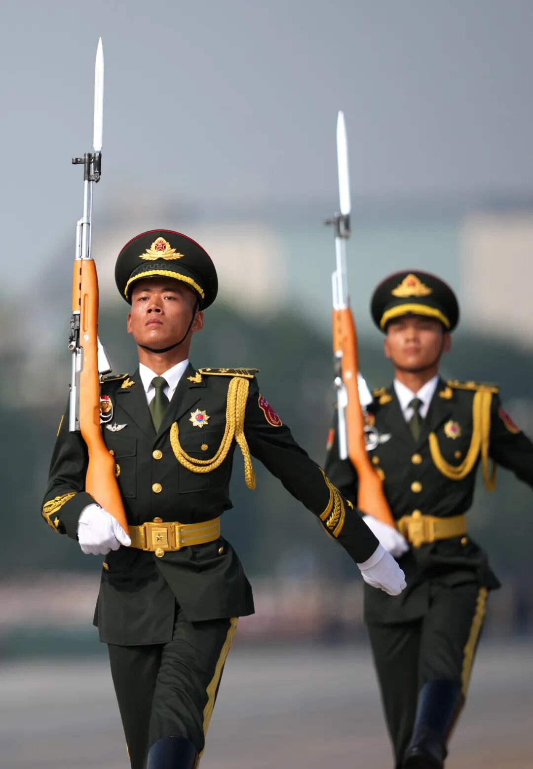 这是中国人民解放军仪仗方队通过天安门广场。新华社记者 任鹏飞 摄