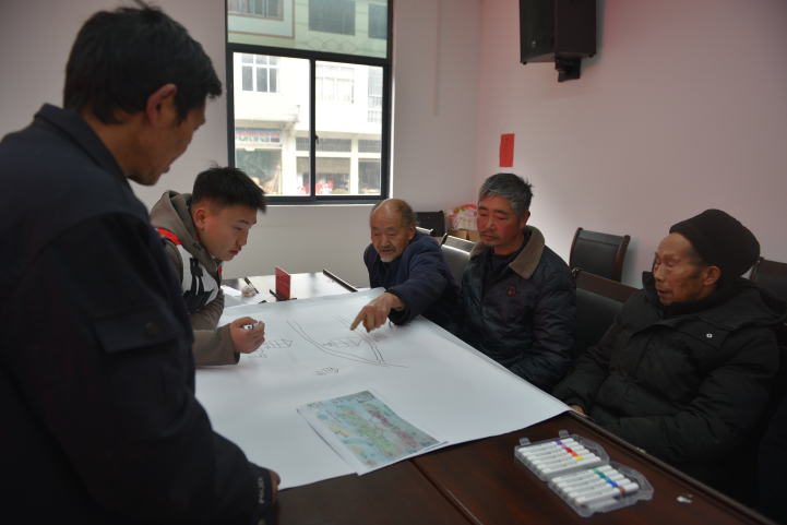 活动室里,几张长桌拼起临时工作台,村民们手持彩笔在稿纸上勾勒着家园的轮廓:哪里是滋养田垄的灌溉水源,房子周边是竹林还是街道,村口哪段道路亟待拓宽方便出行……年过六旬的村民范泽兵,手指在草图上轻轻点划,脸上满是笑意:“没想到活了几十年,还能凭着对家乡的熟悉为建设出份力。”他的话道出了在场村民的心声,大家纷纷主动补充细节,每一条建议都饱含对家园的深情,每一个诉求都承载着对美好生活的期盼。
