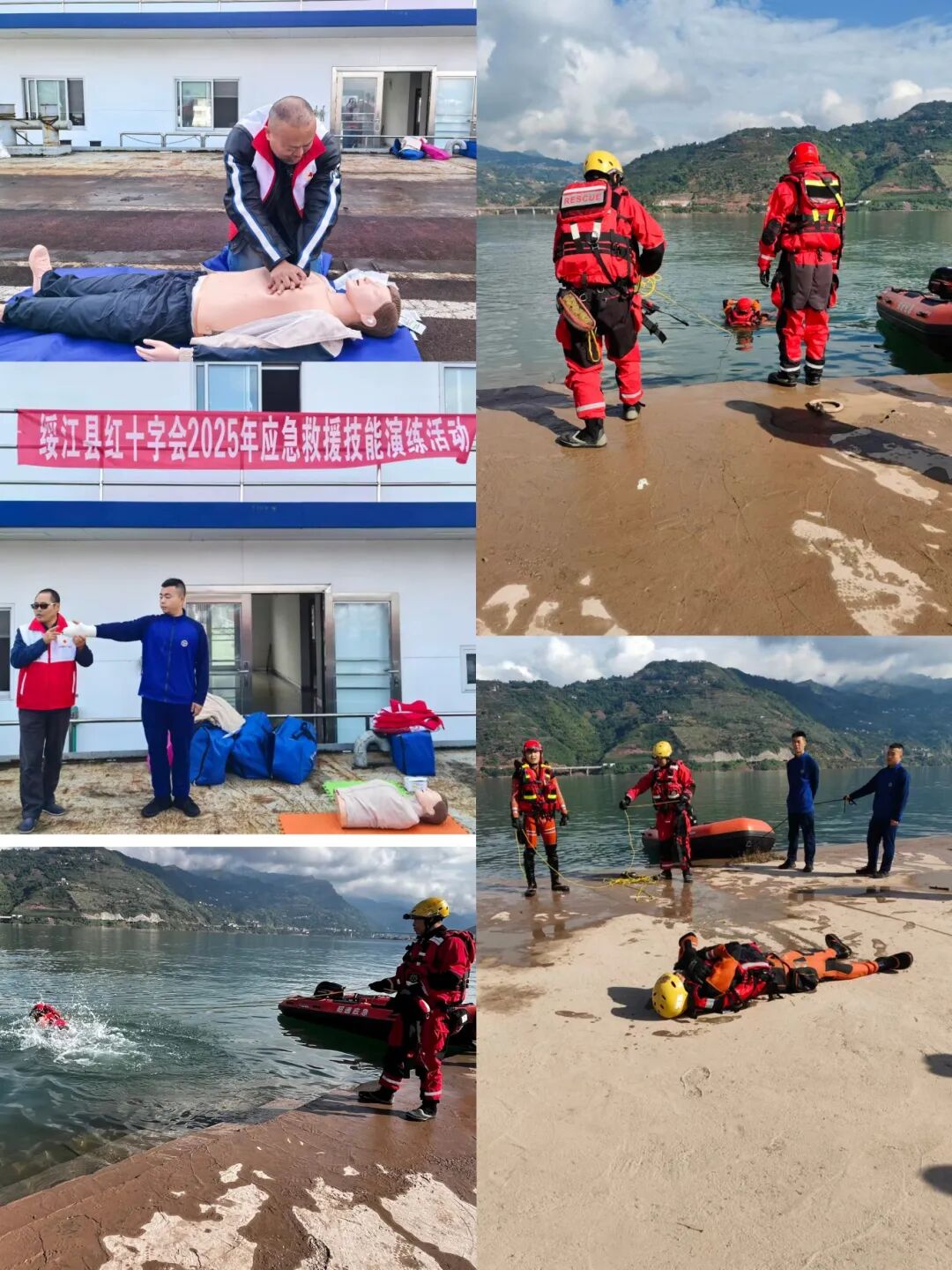 演练紧密结合本地实际,设置了心肺复苏、创伤包扎等基础技能实操与金沙江水域人员落水救援情景模拟两大环节。在基础技能演练中,队员们操作认真,动作规范,展现了扎实的训练功底。随后进行的水域救援模拟,以群众钓鱼失足落水为背景,消防应急救援队快速响应,熟练运用抛投器、冲锋舟等装备,成功完成了对模拟落水者的快速救援及岸上医疗处置,整个过程指挥有力、配合紧密、处置高效。